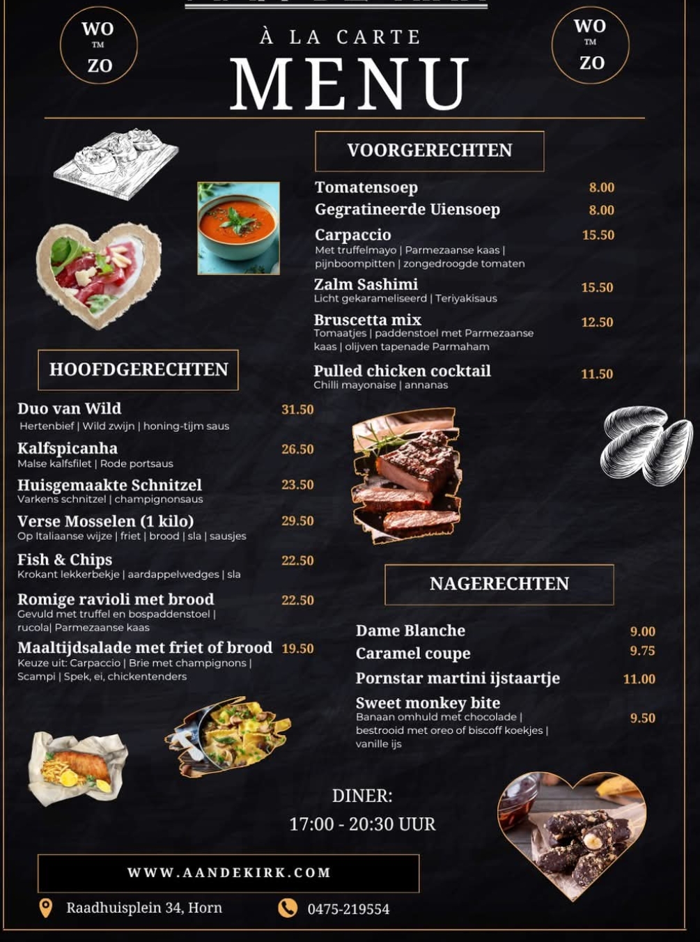 De menukaart vanaf 29 oktober (mosselen pas vanaf 30 oktober)